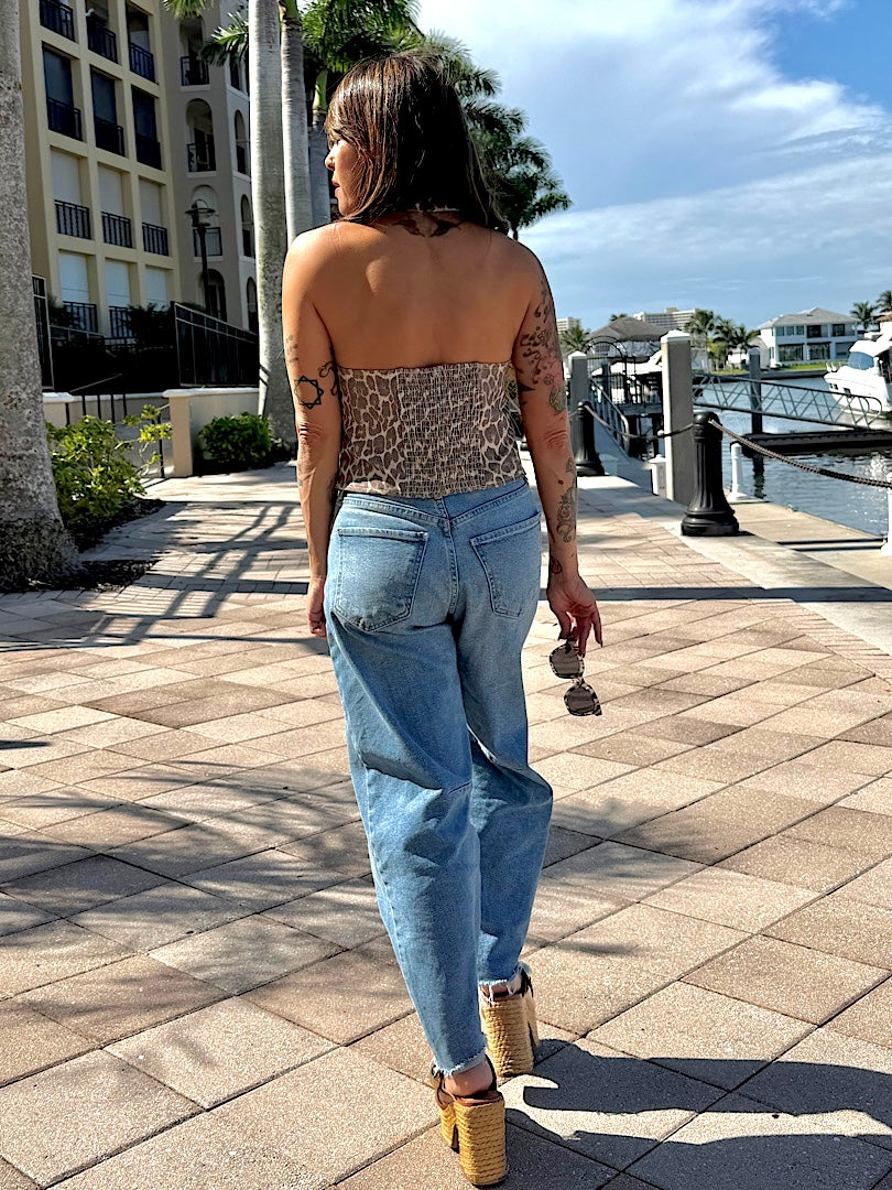 Turn up the confidence with Halter Heat — a fitted halter neck vest designed to command attention. Crafted from a soft twill leopard print, this piece blends vintage charm with a modern edge. The V-neckline and structured silhouette create a flattering shape, while brass buttons and faux pockets add a touch of timeless detail. Perfect for pairing with jeans, skirts, or leather pants — this vest brings fierce energy to any look.